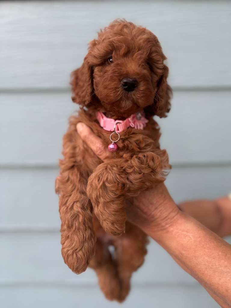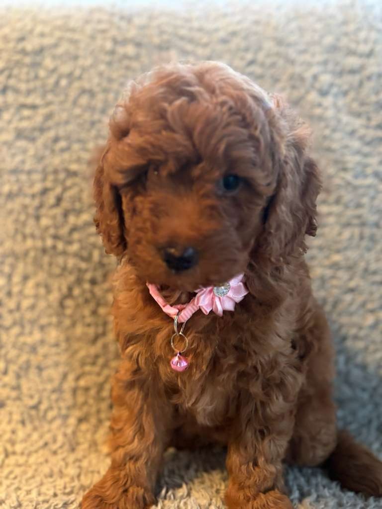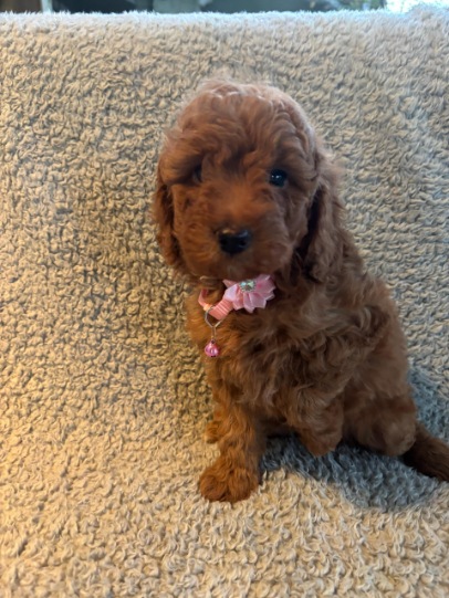 Stella is a gorgeous red sweetheart with the most beautiful puppy eyes. This little Mini Goldendoodle puppy is very much one of the royalty types. She is mostly calm and relaxed by herself. When indulged her playful loving side shines. Would make a great family companion dog for kids and seniors alike.